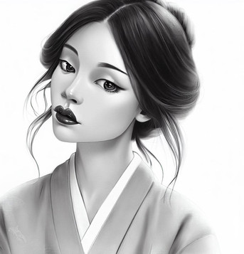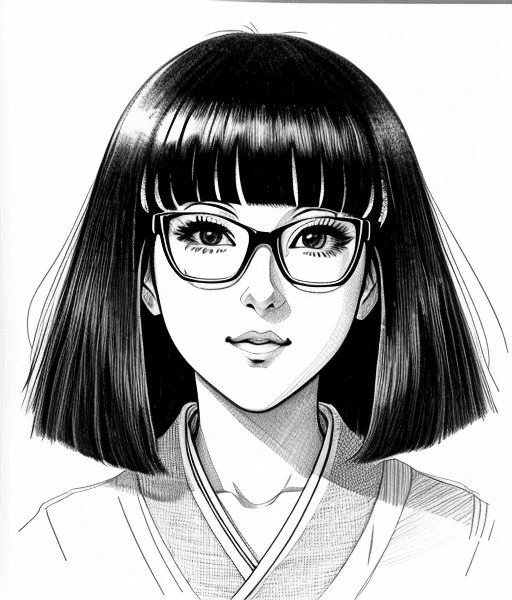 #ai #bangs #black #diffusion #drawing #drawn #glasses #hair #hand #kimono #long #manga #pencil #portrait #rimmed #rough #short #sketch #stable #straight #style #white #art