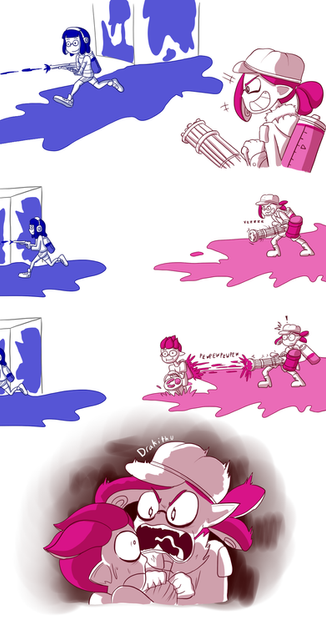 Inkling Girl: "Oh, don't let me interrupt. Finish talking about your plans to sabotage my team before the match starts. I insist." (cocks weapon menacingly)