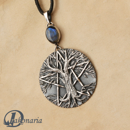 Tree pentacle made by me from scratch of fine silver and green aventurine. Oxidized and polished. It's definitely not big - it's diameter is 3,2 cm.You can find my jewellery in my Etsy shop: www.etsy.com/shop/drakonaria