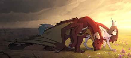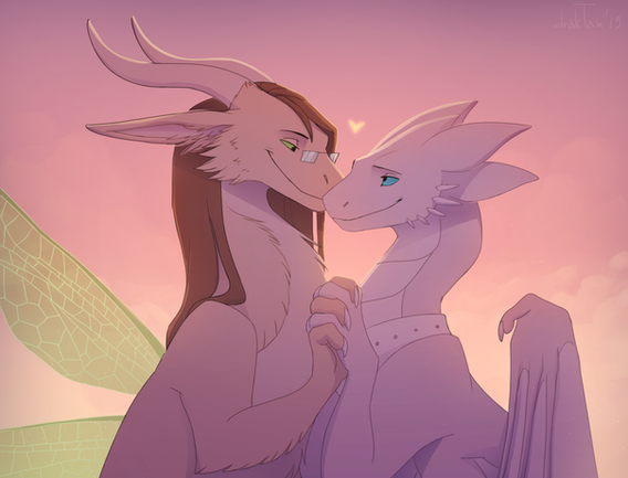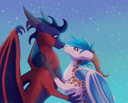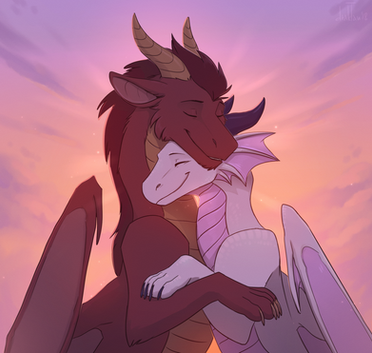 #black #blue #cuddle #dawn #dragon #dragoness #ears #evening #falling #fluff #fluffy #fur #furry #gray #horn #horns #hug #lick #licking #night #pink #sky #star #white #wing #winged #wings #loneguardian #draktau