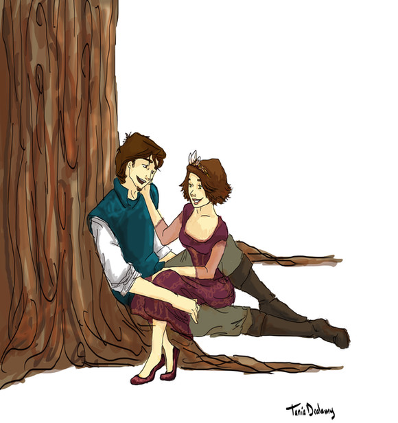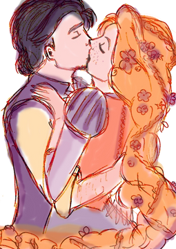 I like Rapunzel as a brunette because I am a brunette. I love this and Eugene looks as handsome as ever. Nice job.