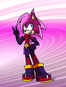 She has Sonic's carefree spirit and Amy's leadership skills! Likewise, her powers include speed and strength, which is shown through her martial arts skills.