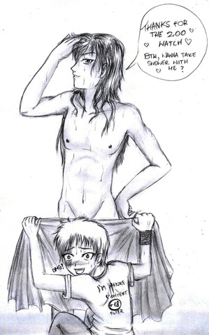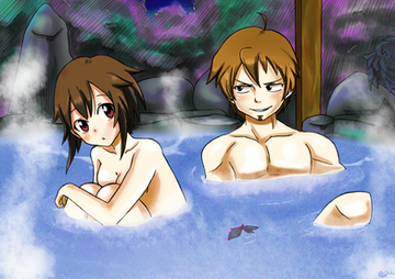 Ruki: KYAAAA (Takato se sujeta de Ruki). Takato No me sigas desnudo, al menos ponte la toalla.