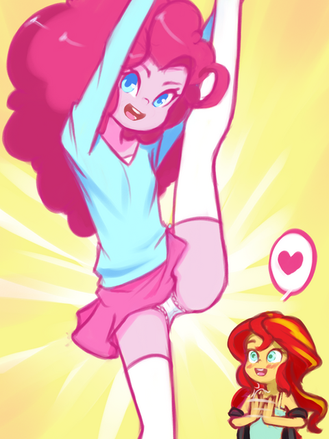 whats whats she supposed to be doing? in the first one it looks like shes pulling down rainbow dashes skirt