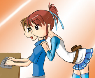 Lucky lad tickling the ivories, coding in Linux, or surfing for artwork on DA. LOL