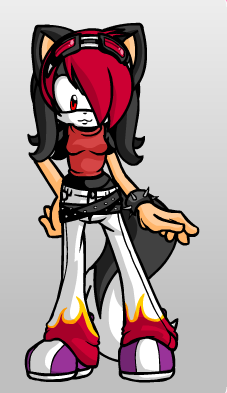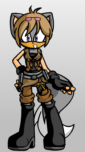 Background: When she was 7 her secluded home in the woods was attacked and her parents killed by an armadillo that claimed to be the next upcoming tyrant. She never bothered to learn his name. He had no army or anybody working for him yet. All he had was an experimental robotosizer that he hadn't tested yet. She was picked to be the first test subject because she was the only survivor of the first home he attacked. After being placed in the robotosizer, he went on and on about how he was going to surpass all of the other tyrants in the world. He then activated the machine. After being shot by the experimental robotosizer, only her right eye and left hand appeared to have changed. The armadillo angrily tried to activate it again, but it malfunctioned and opened the containment cell. She quickly tackled him and held on to him with both hands, surprisingly he was slowly going through the robotification process and it looked pretty painful. She held onto him long enough to turn him almost completely into a robot. All that was still organic was his right arm that he threw her off with. After he threw her, he didn't move. She got up out of curiosity and touched his arm with her left hand, starting the process again and finishing the transformation. Once the transformation was finished a voice coming from the robot asked for a command. She immediately yelled at it to jump in a lake and rust. It then proceeded to do just that. She gladly never saw him again. She eventually made her way to the land of Neo Robia. It took her ten years to get there and she had to negotiate for shelter, food and clothes along the way since she had no way of surviving on her own. She now works as a negotiator/interrogator for those that Chaos Croc has no time to deal with. (She is not the only one)