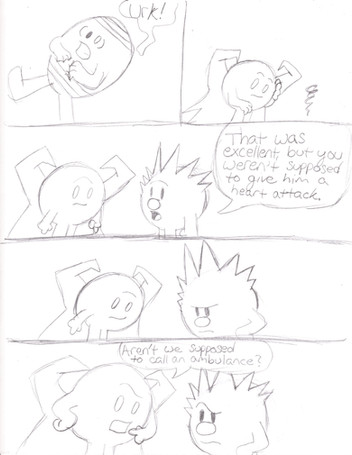 ya i recently saw that guy on YT. He looks weird lol I probably said this before but.. ya you draw megaman characters so cute! iceman in the second panel i like how elecman has a bit of a bored attitude ;3 and i love how bombman just says it up front poor cutman got scared.