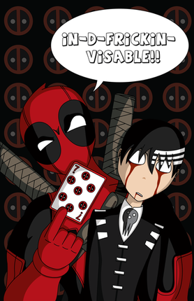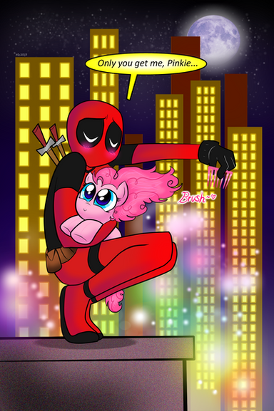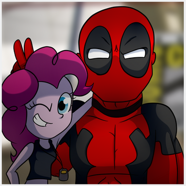 One of 3 MLP pieces done for Katsucon 2013. They were pretty well received. I didn't know Pinky Pie and Deadpool shenanigans was like a thing until after I did this o.O lolBig eyes colored lines ect woot. That should actually be "PinkiePool" lol
