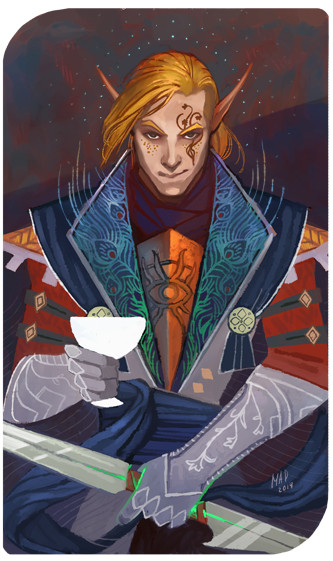 Opening card, The Fool, from my Divinity tarot project! Dragon Slayer from Divinity 2 as The Fool.