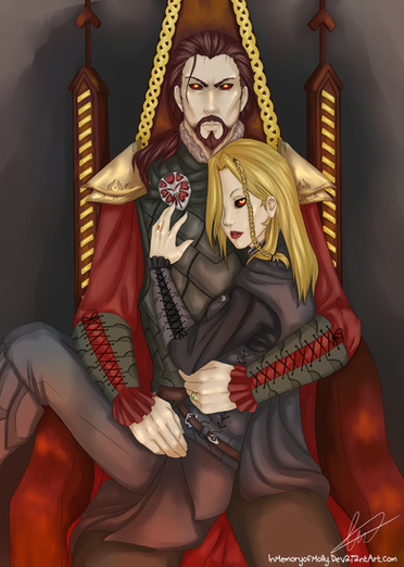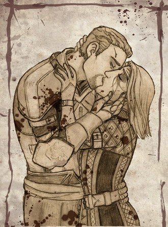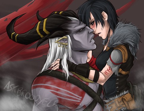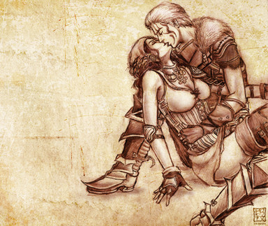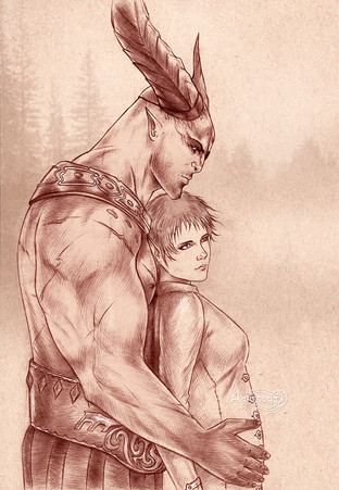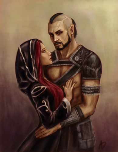 ...... The Arishok in Dragon Age 2. I.. Just... I don't even... Just... DAYM. YOU SEXY BEAST.Well, anyway. I just had to draw my fHawke in his lap. I love him so much. And I know that the possibility of that happening is slim. He'd probably throw her to kingdom come if she tried that, even if you earn his respect. >_>;
