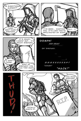 I was always impressed by the way Saren died, to be honest. But oh god, Nihlus, there are no words for the D: in the way he's killed BY HIS OWN MENTOR. Also, Tela Vasir. wow, that woman made me feel like an asshole.