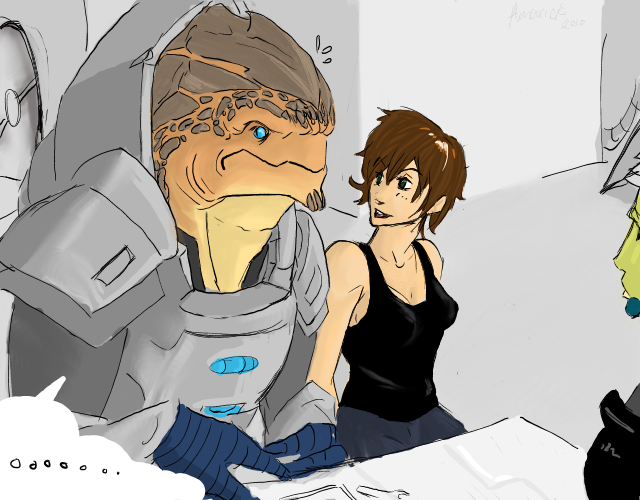 Can't you just imagine the epic face/palm Mordin is performing? :'D"Informed you prolonged human to drell skin contact can cause rash, Shepard. "