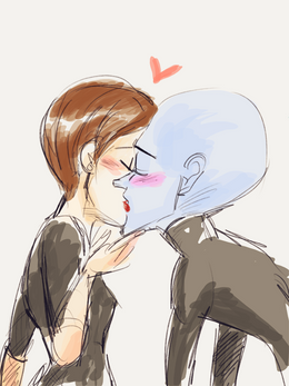 Such adorable drawing, I love how she's tugging at his collar and he's all surprised 8D It's amazing.