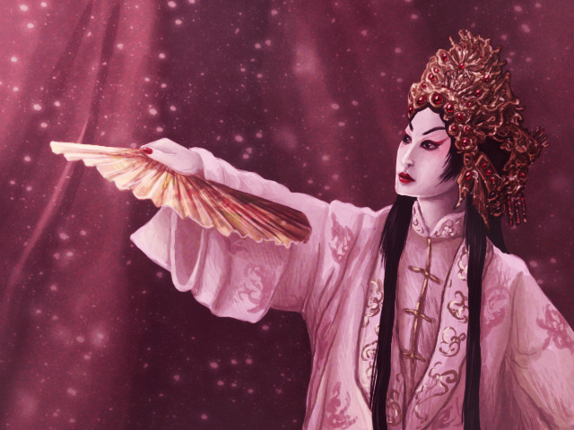 Drunkened Concubine.参考贵妃醉酒的花旦行头。