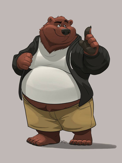 Yeah, great character design, I love this one, his humongous feet contrast his comparatively small head. Makes him look real friendly, and interesting. Great job.