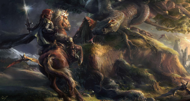This looks absolutely epic - I love the proportions you've given the dragon and how the figure of the knight stands out against it.