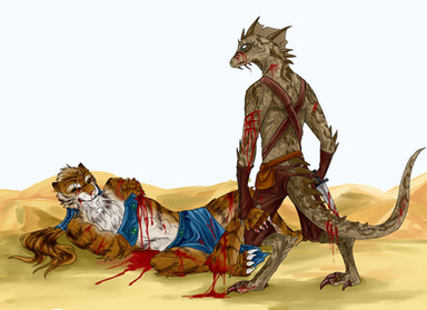 Nice, the blood looks pretty well done! Pretty nifty character designs, too! 8D
