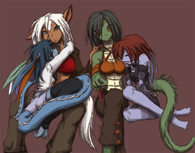 And both the girl(s) on the left and the girl in the middle are new introductions for my Monster Girl of the Month project. I just did extra for April. XD