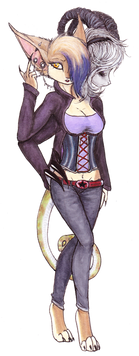My half of an art trade with =bhoffman11 .He requested I draw his character, Roxy, as a mix of my two species, emnon and phiox. I kept her muzzle short to keep with her true design a bit better.