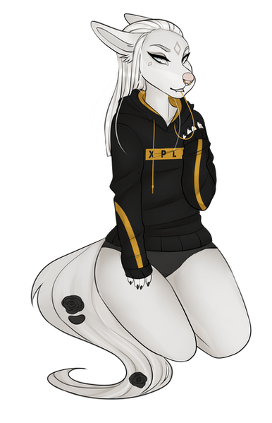 My half of an art trade with =bhoffman11 .He requested I draw his character, Roxy, as a mix of my two species, emnon and phiox. I kept her muzzle short to keep with her true design a bit better.