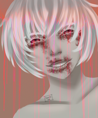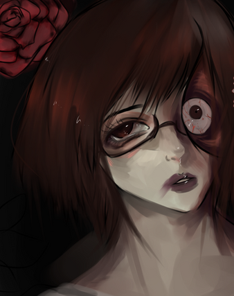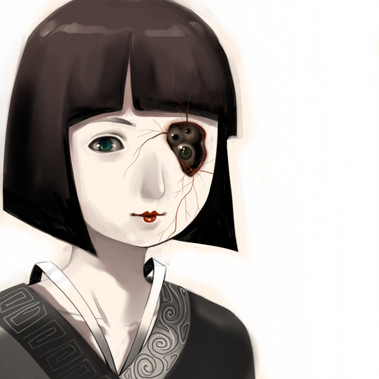 Is she trying to fix her eye to see happiness, while the left eye is so sad. Damn, I could feel those sadness in my heart.Β