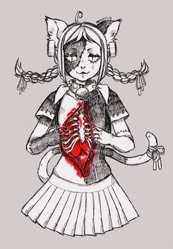 Loving the soft and warm tones! I especially like the small gruesome details of the veins from the eyes and the shading of the blood. (That can be difficult sometimes. DX )