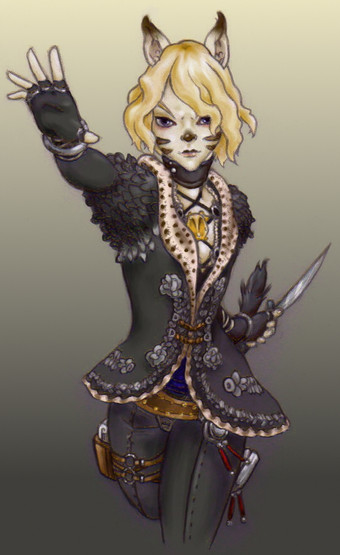 So I haven't even looked up this FF game, but I'm guessing you design the character in it since you said this character is your FF character? Cute design if that's the case! And cute drawing too!