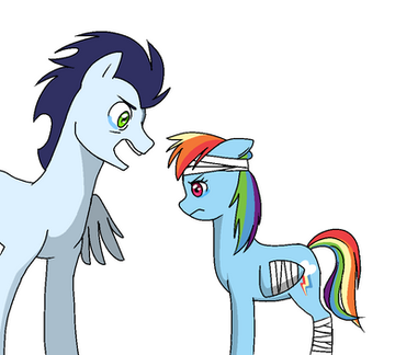 Soarin: Stay away from Rainbow or elseQuibbler: Or else what? I bet you're all bark and no bite!