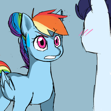 Although from the moment I saw the episode I was 100% sure people would start QuibbleDash and it made me kinda sad cuz, well, I PREFER SOARINDASH!! But this doesn't mean you guys can't like it or anything cuz it makes sense and it's okay if you like either ship! Hope you guys know I'm not hating or anything! This is just what my idea of an angry and jealous Soarin is; him going the extra mile to make sure that Rainbow is kept to himself