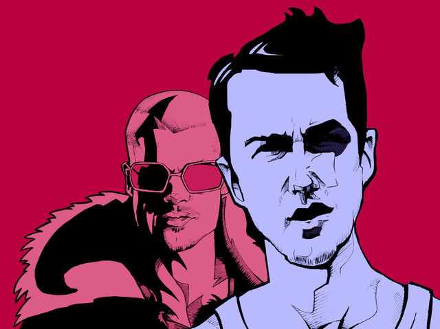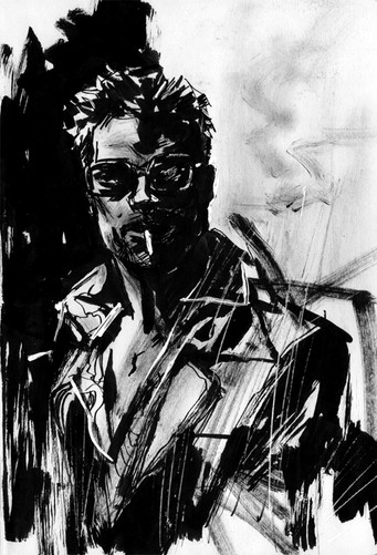Fight Club. Pen and ink on paper, color in post (PS). Series 4 of 4. Great excuse to try a graphic novel approach to a subject.