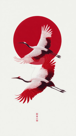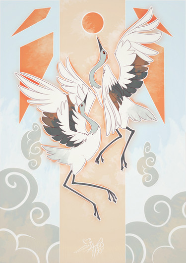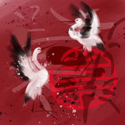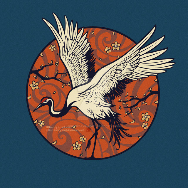 Pen and ink on paper, color in post. Tattoo design. Simplified the crane to keep the design clean. Tattoo series one of three. I saw this mentioned on another site as Ying Yang art, which is a great compliment. It wasn't intentionally created to represent the Ying Yang, but I like that it speaks that balance to someone.