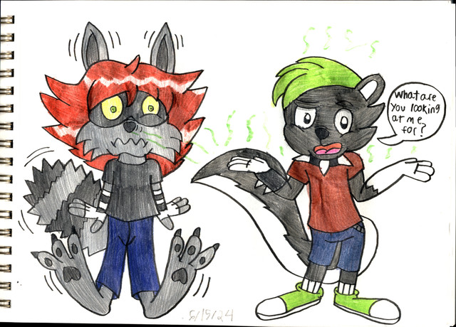Naturally, I didn't find out what skunks really look like until after I finished this. Drawing from memory is not a good idea when accuracy counts.