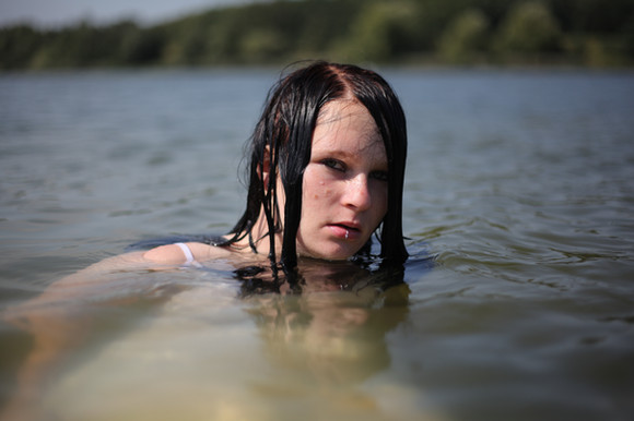 My favorite part of this is her loose posture and the way her fingers are slightly curved... and how it leads our eye to the little disturbances in the water.