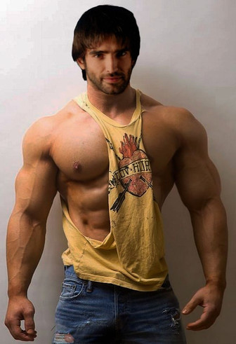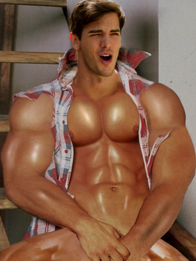 And Mmph! As the button pops from your jeans the zipper flies down and your pants burst. I press my hips on your hips and breathe against your masculineshaven chin, squeezing you hunky body and passionately caressing your massive shoulders and beck, watching the veins pop from your beef arms!