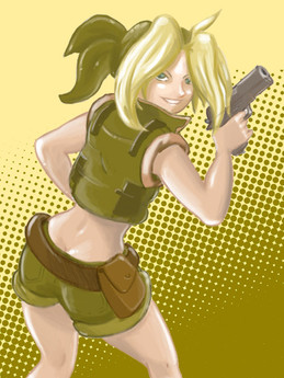 I have to say that I don't really find this one terribly visually exciting. Aside from, er, the obvious, her face doesn't really do much for me, the pose is kinda meh and I don't even like the colours that much.