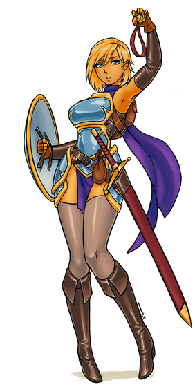 Nice swords and armour design. I like the lightning and the face.
