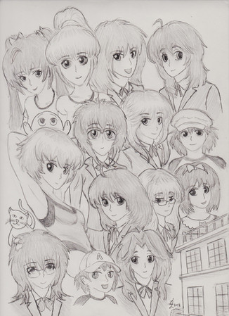 Just some quick head-and-shoulders shots of a few of my characters, a fair few of them being Metal Mittens (game I made once, game I will eventually remake) characters; the bespectacled girl drawn three times on the left is unrelated, however.There was a reason to making these pics, but I won't go into it here.