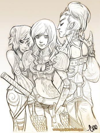 Duddle 14, two weeks woo!Sort-of fanart inspired by playing King's Bounty and being far too amused by a story involving a female demon tricking some dwarves into showing her how the changing of the guard was carried out.