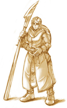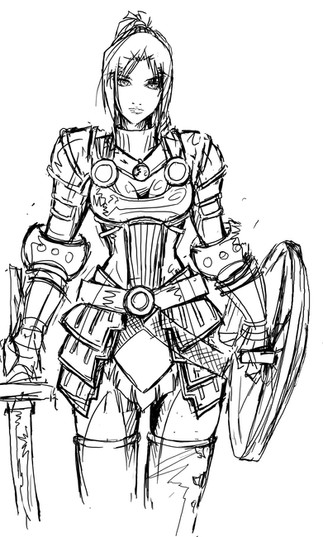 I find something strangely juxtaposing in a picture of someone carrying a weapon and wearing armour, who's smiling with a very carefree expression. It reminds me of the issues raised in 'To Kill a Mockingbird' when the "mob" is broken by the innocence of the children. Maybe going a bit too deep here for a "scratchy sketchie" but that's what popped into my mind when I looked at this.