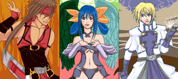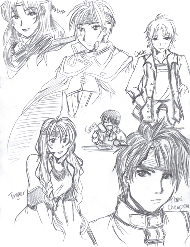 At the bottom, you have a sketchyrough version that I drew earlier. I suppose it would be more of a fair comparison if it were in colour, but hey. Not really patient enough with art right now, plus I'm tired. Since I'll have to make a polished looking character selectish screen eventually anyways, it'll probably happen one day.