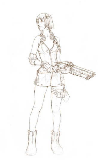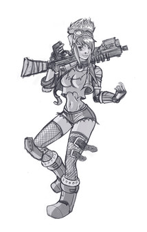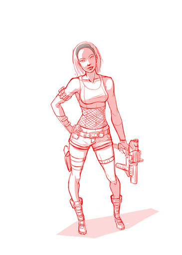 i miss the funky curls you gave her in that calender pin up, lol. totally digging the new gun design.