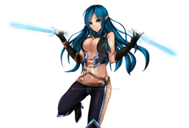 Just a quicky... I wanted to do something fast and easy after the nurse pic, since that took quite a while. I also thought it'd be nice to try some slightly different colouring stuff, although I don't think I spent long enough on one or two bits. Quite happy with the skin tone, at least... not sure I've picked better colours for that before :3Nightsong should look a lot less cutesy and more badass than this, but it seemed like a funny idea. She's from Spellforce 2 (if you can't read
