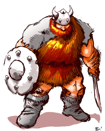 Saved him for last because... well, I felt his design wasn't as broken as some of the others. Was also a bit intimidated about having to draw a big chunky manly man, since he always seems to come out looking silly and spindly.So... yeah, changed his horns around, and I think he might've beefed up a bit. But yay, I've done all the characters now XD