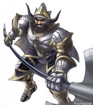 The mighty warrior perpetually slaughtered his foes on the battlefield...