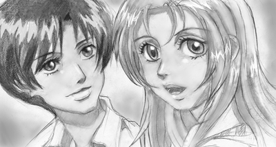 Hope and Ria, in all their sketchy glory. Bits of this pic drive me kinda nuts, but I think I like it as a whole.Oops, Ria's specs went missing again. I really need to hammer her short-sightedness into my stupid thick skull (no doubt along with some other things while I'm at it).