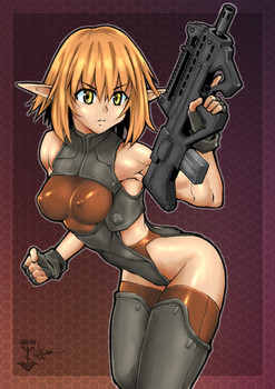 Seriously though, nice design as usual and nice hotness on the elf's part, but what kind of gun is that supposed to be exactly?