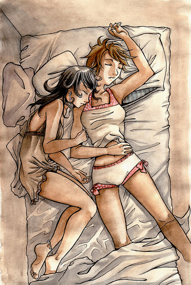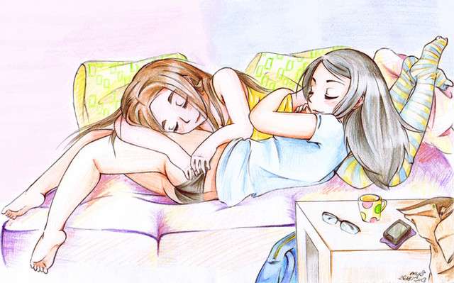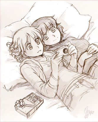 Two girls together in a bed is always comforting to look at... well that's what I think! x_x