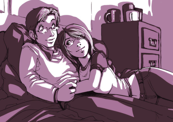 This is so very cute. I love the colors too. Its so warm and inviting :3 I really like their faces. And the folds are all so nice! Her butt is adorable :>