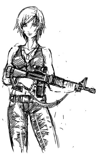 Mmm ArynAnd it wasn't really as if I was intending to draw her here either. In fact, to be honest, I'd drawn a completely different person in a completely different pose, but it was also completely rubbish... and as I scrapped and redrew huge chunks of it, this kinda fell out.
