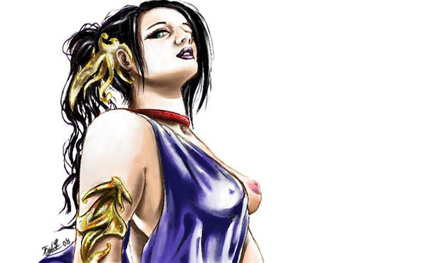 This was just a quick "I'm bored" sketch that turned into a fully coloured jobby. Spent longer than I would've liked on it, because I'm a little out of practise and was playing around with a bit of a different style of face... I'm torn as to whether this thing looks better in black and white or in colour, but if I give you the colour then you can always greyscale it for yourself...Oh, yeah, it's a picture of Wu the Lotus Blossum (I think that was her full title anyway) from BioWare's Jade Empire. Can't say it's an amazing likeness, but it'll do